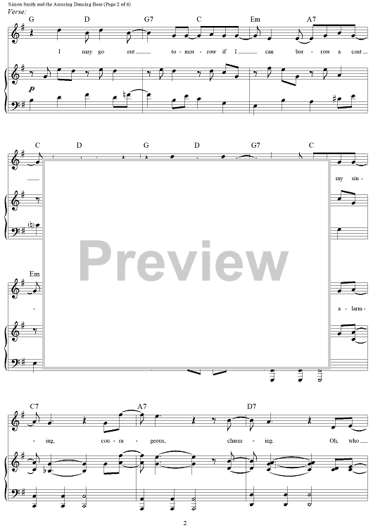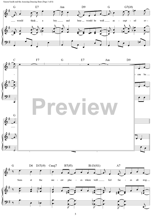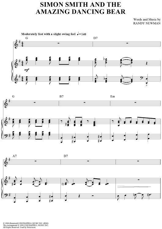 Digital Sheet Music for Simon Smith and the Amazing Dancing Bear by Randy Newman scored for Piano/Vocal/Chords; id:253416