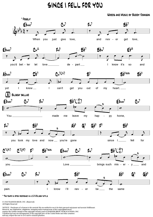 Digital Sheet Music for Since I Fell for You by Buddy Johnson scored for Lead Sheet; id:315154