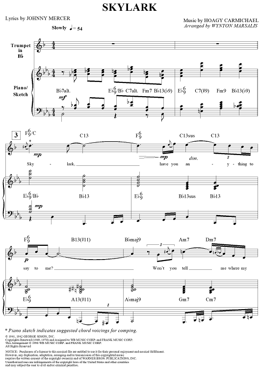 Digital Sheet Music for Skylark by Johnny Mercer, Hoagy Carmichael, Wynton Marsalis scored for Trumpet/Piano; id:154813