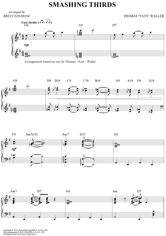 Digital Sheet Music for Smashing Thirds by Thomas Waller, Brent Edstrom scored for Piano Solo; id:460318