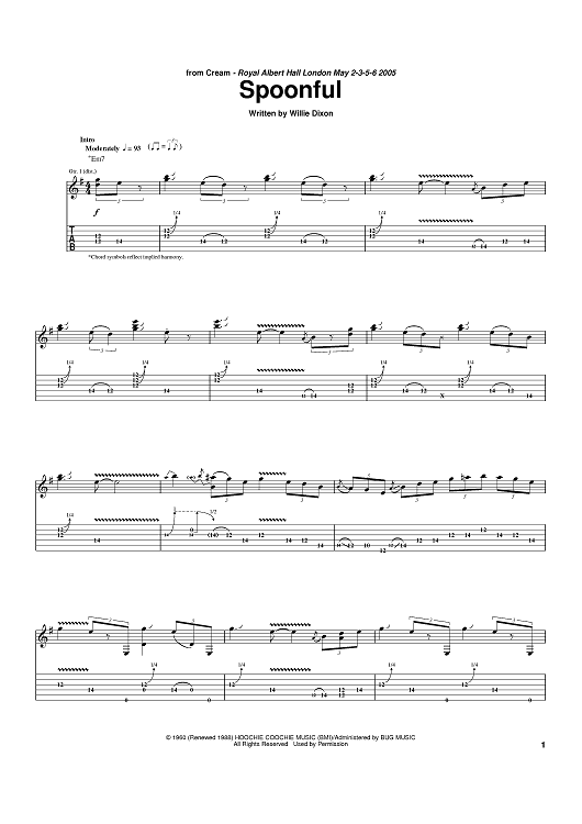 Digital Sheet Music for Spoonful by Eric Clapton, Cream, Willie Dixon scored for Guitar Tab; id:392545