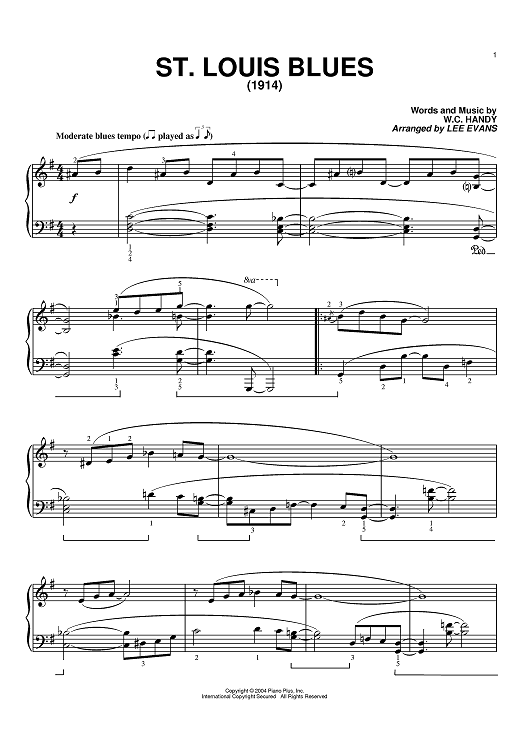 Digital Sheet Music for St. Louis Blues by Duke Ellington, Django Reinhardt, W. C. Handy scored for Piano; id:374383