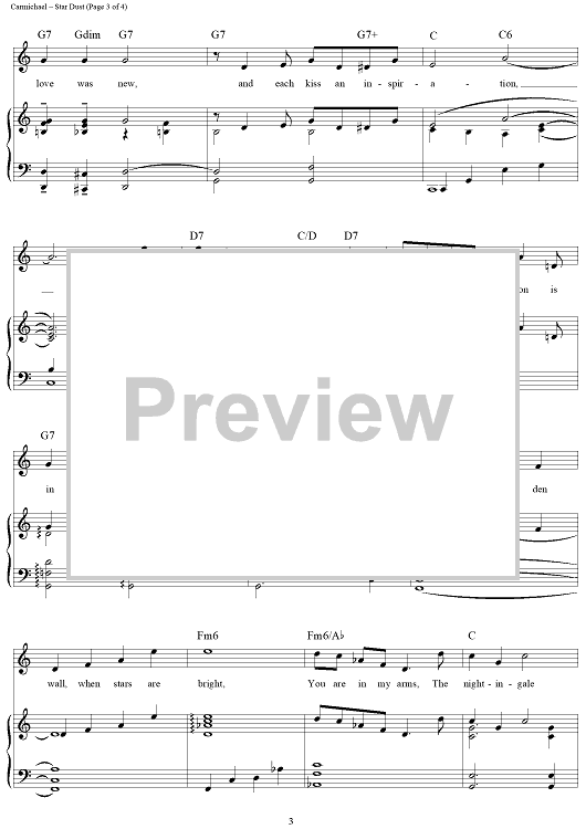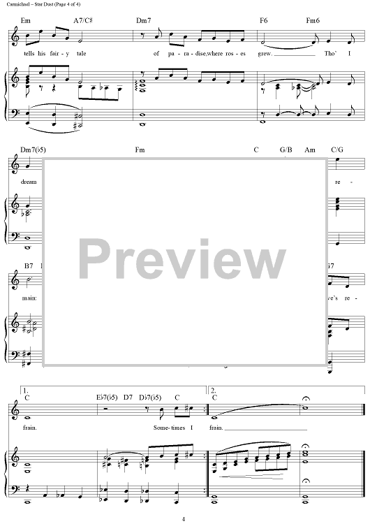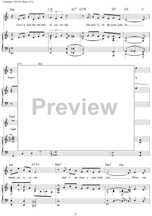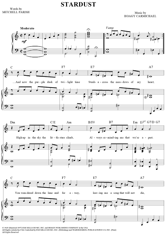Digital Sheet Music for Star Dust by Mitchell Parish, Hoagy Carmichael scored for Piano/Vocal/Chords; id:108926