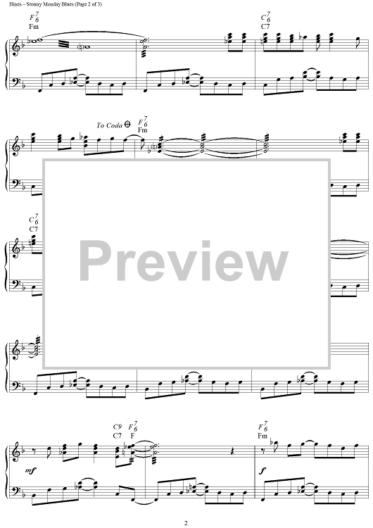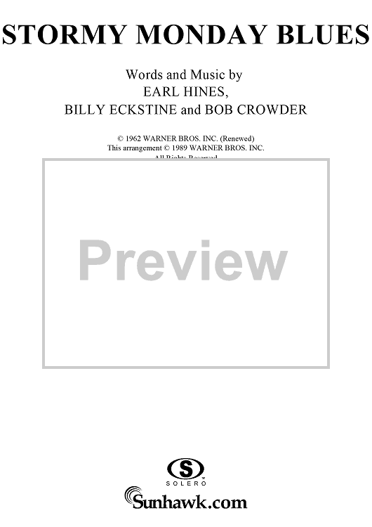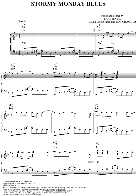Digital Sheet Music for Stormy Monday Blues by Count Basie, Earl Hines, Billy Eckstine, Bob Crowder scored for Piano Solo; id:120246