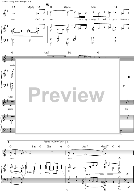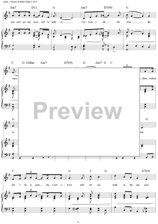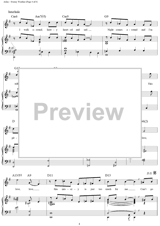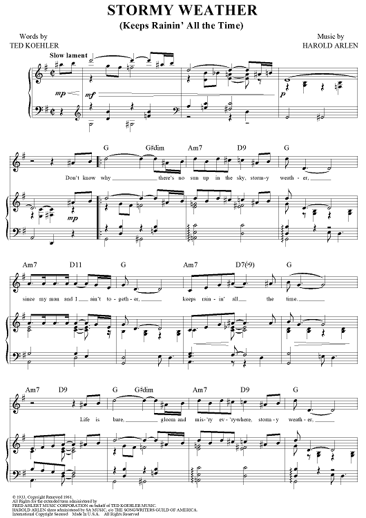 Digital Sheet Music for Stormy Weather (Keeps Rainin' All The Time) by Harold Arlen, Ted Koehler, Duke Ellington, Lena Horne scored for Piano/Vocal/Chords; id:114120