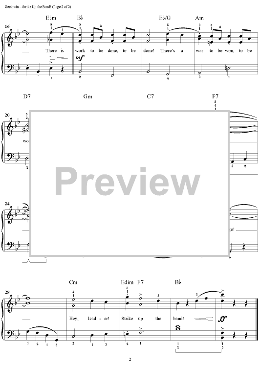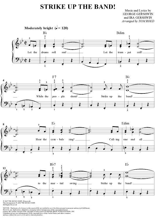 Digital Sheet Music for Strike Up the Band by George Gershwin, Ira Gershwin, Tom Roed scored for Easy Piano/Vocal; id:289457