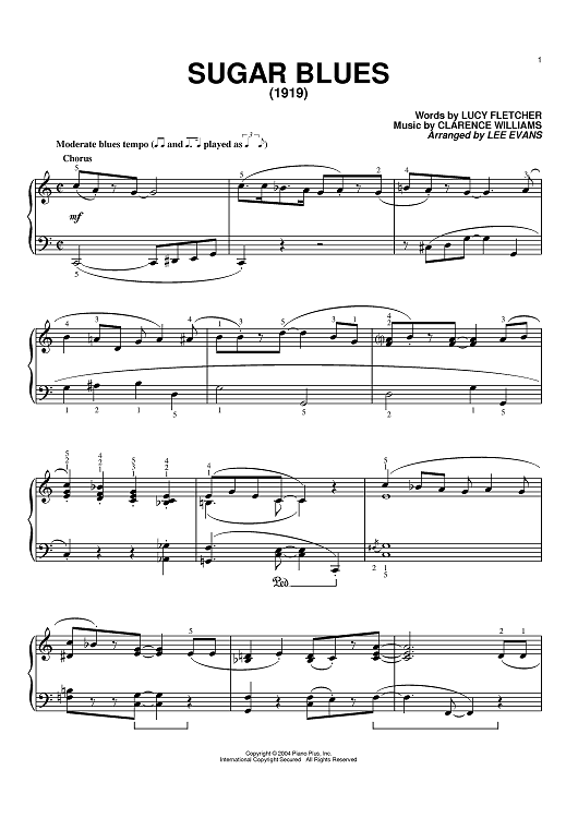 Digital Sheet Music for Sugar Blues by Clarence Williams, Lucy Fletcher, Clyde McCoy scored for Piano; id:374391