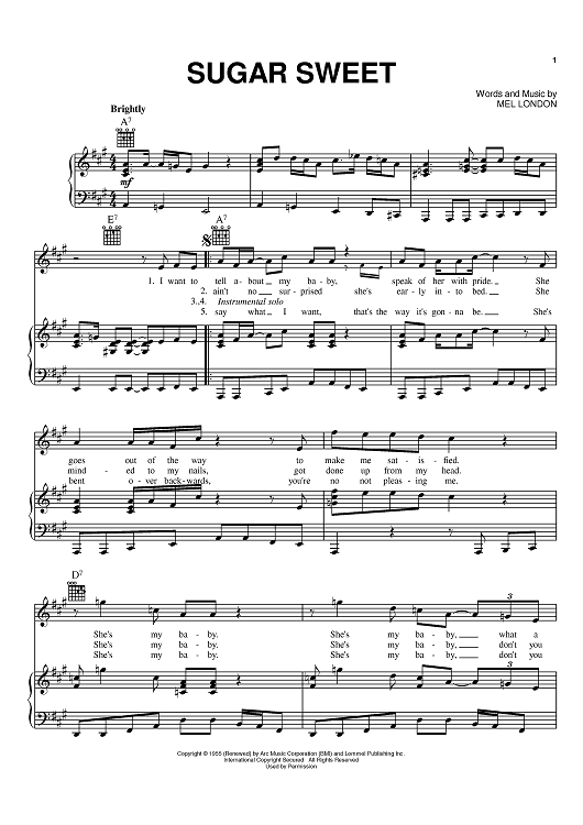Digital Sheet Music for Sugar Sweet by Muddy Waters, Mel London scored for Piano/Vocal/Chords; id:368438