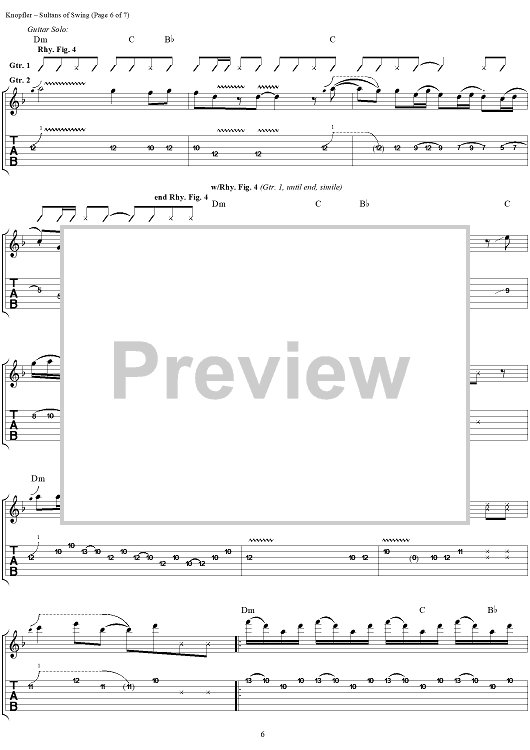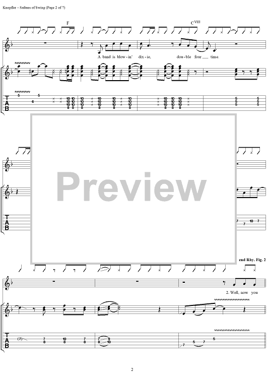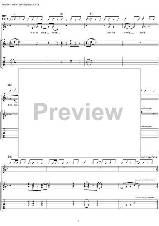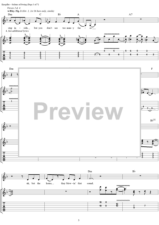 Digital Sheet Music for Sultans of Swing by Mark Knopfler, Kenn Chipkin, Dire Straits scored for Guitar Tab/Vocal/Chords; id:120763