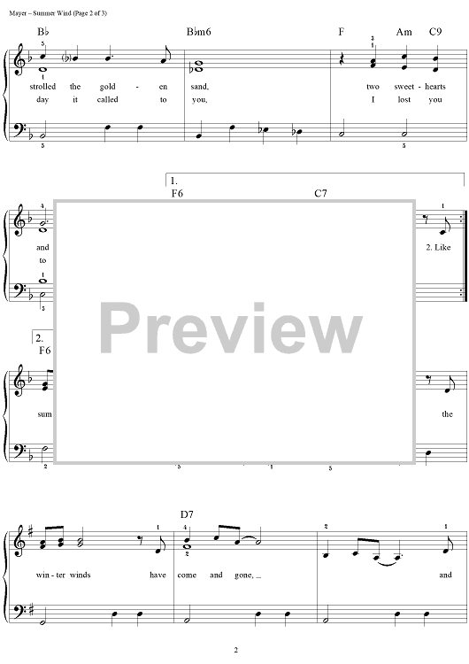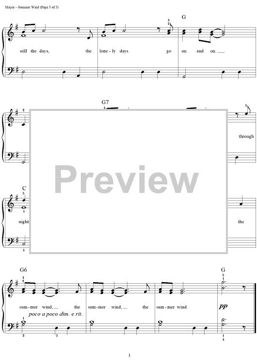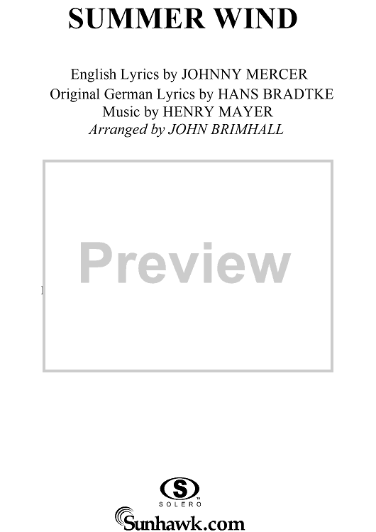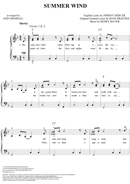 Digital Sheet Music for Summer Wind by Frank Sinatra, Johnny Mercer, Henry Mayer, Michael Buble scored for Easy Piano/Vocal; id:235790
