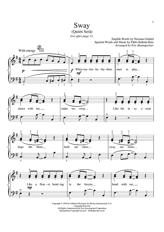 Digital Sheet Music for Sway (Quien Sera) by Norman Gimbel, Dean Martin, Pablo Beltran Ruiz scored for Piano; id:389051