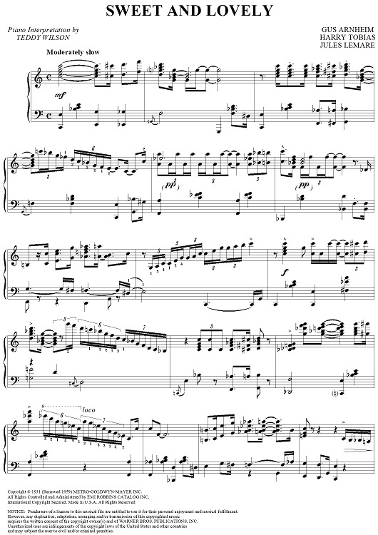"Sweet and Lovely" Sheet Music by Teddy Wilson