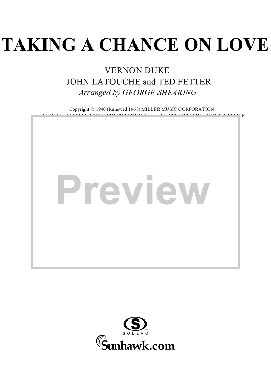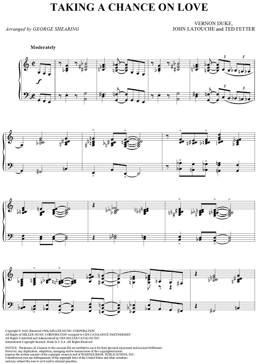 Digital Sheet Music for Taking a Chance on Love by George Shearing, Vernon Duke, John La Touche, Ted Fetter scored for Piano Solo; id:120037