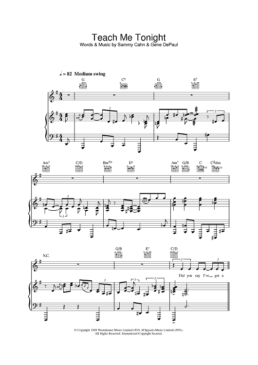 Digital Sheet Music for Teach Me Tonight by Clare Teal scored for Piano/Vocal/Chords; id:379337