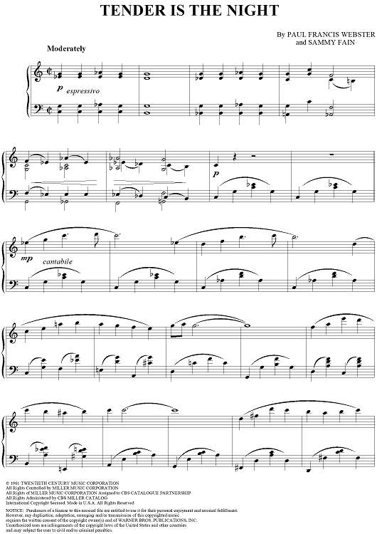 Digital Sheet Music for Tender is the Night by George Shearing, Sammy Fain, Paul Francis Webster scored for Piano Solo; id:120639