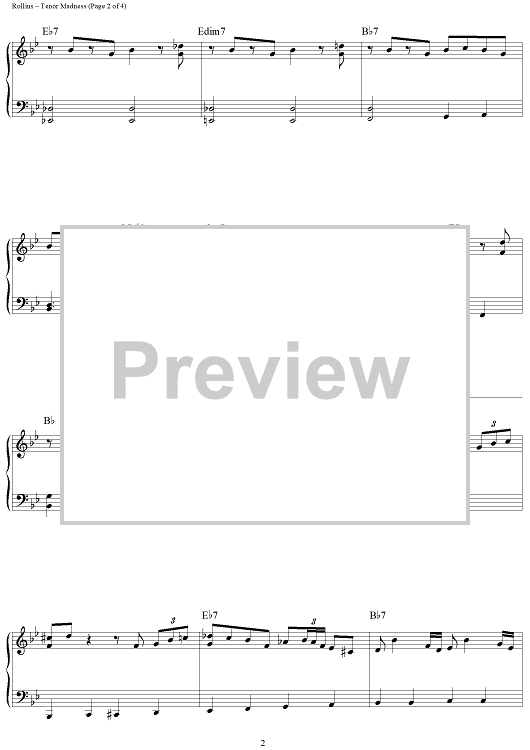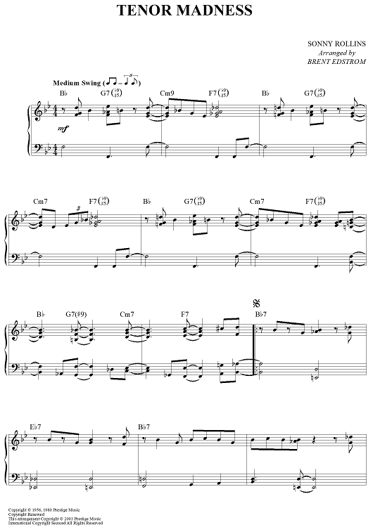 Digital Sheet Music for Tenor Madness by Sonny Rollins, Brent Edstrom scored for Piano Solo; id:464338