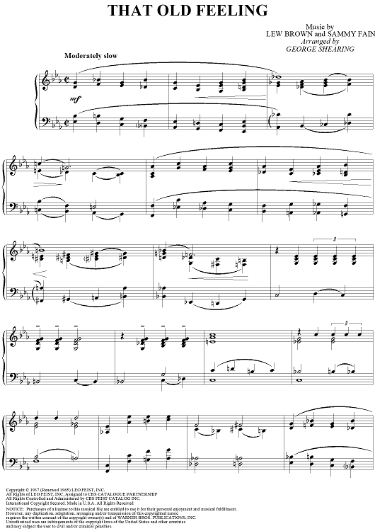 Digital Sheet Music for That Old Feeling by George Shearing, Sammy Fain, Lew Brown scored for Piano Solo; id:132913