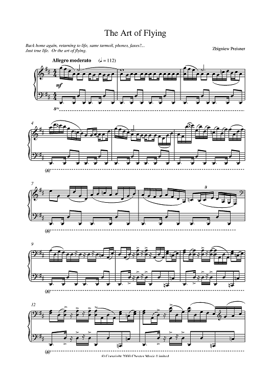 "The Art of Flying" Sheet Music by Zbigniew Preisner