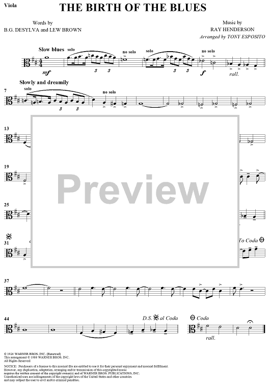 "The Birth of the Blues - Viola" Sheet Music by Ray Henderson