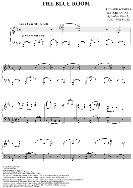 Digital Sheet Music for The Blue Room by Richard Rodgers, Lorenz Hart, Dave Hildinger scored for Piano Solo; id:321628