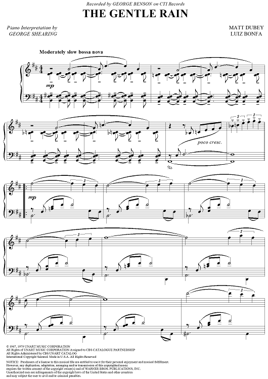 Digital Sheet Music for The Gentle Rain by George Shearing, Luiz Bonfa, Matt Dubey scored for Piano Solo; id:115787
