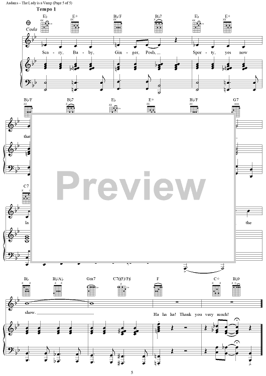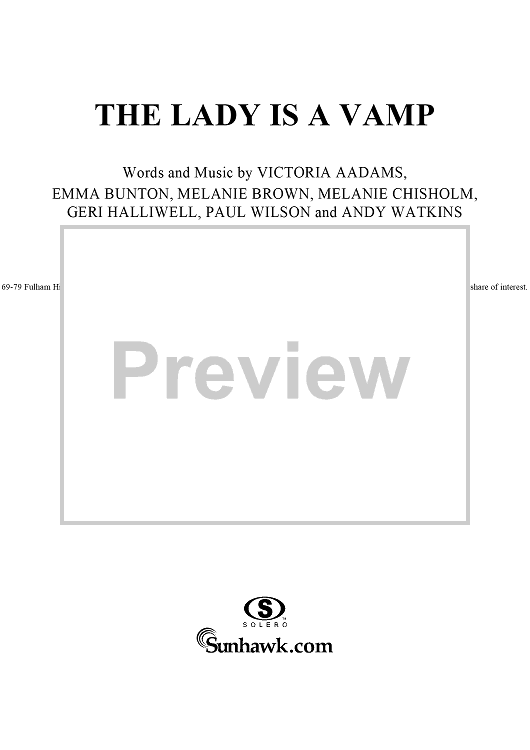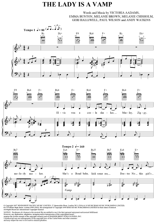 Digital Sheet Music for The Lady Is a Vamp by Paul Wilson, Andy Watkins, Emma Bunton, Melanie Brown, Mel C, Geri Halliwell, Victoria Aadams, Spice Girls scored for Piano/Vocal/Chords; id:278447