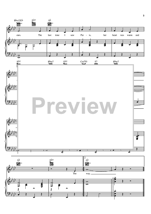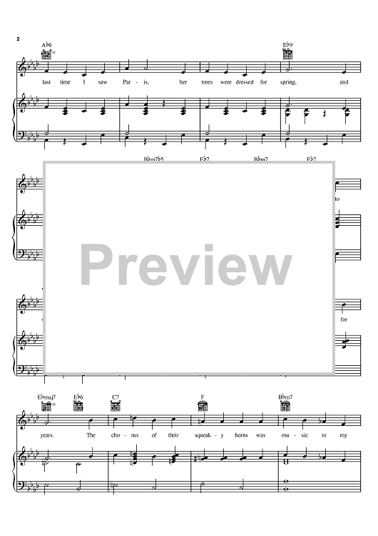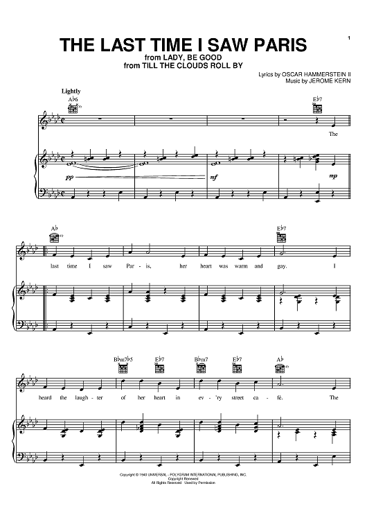 Digital Sheet Music for The Last Time I Saw Paris by Jerome Kern, Oscar Hammerstein II, Kate Smith, Tony Martin, Dean Martin scored for Piano/Vocal/Chords; id:379262