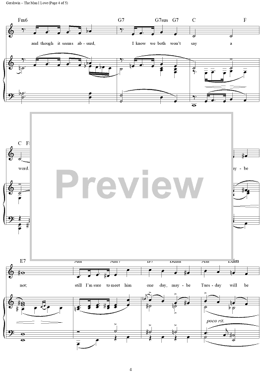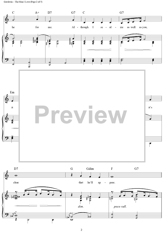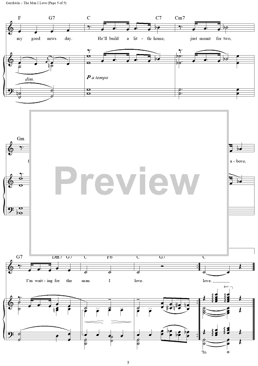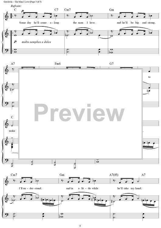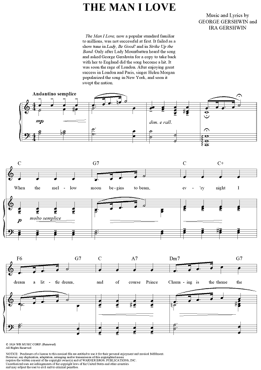 Digital Sheet Music for The Man I Love by George Gershwin, Ira Gershwin scored for Piano/Vocal/Chords; id:312183