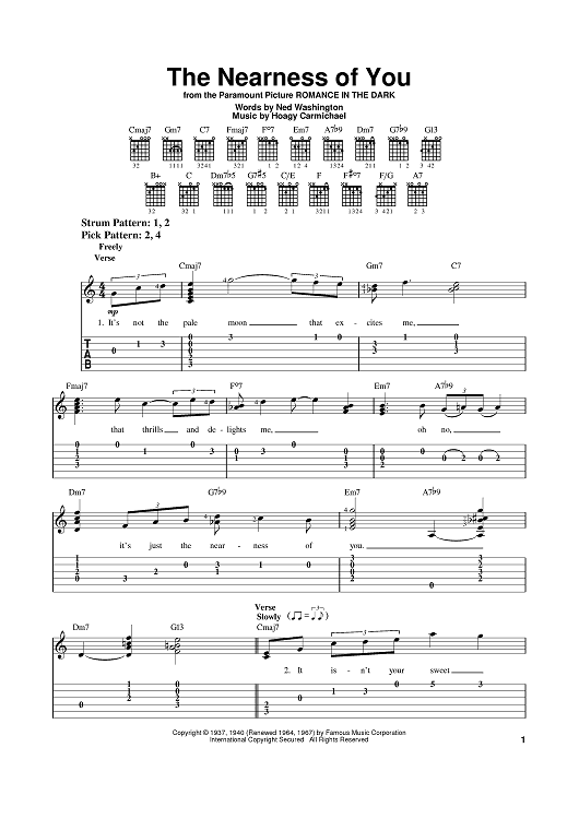 Digital Sheet Music for The Nearness Of You by Hoagy Carmichael, Ned Washington scored for Easy Guitar Tab; id:371405