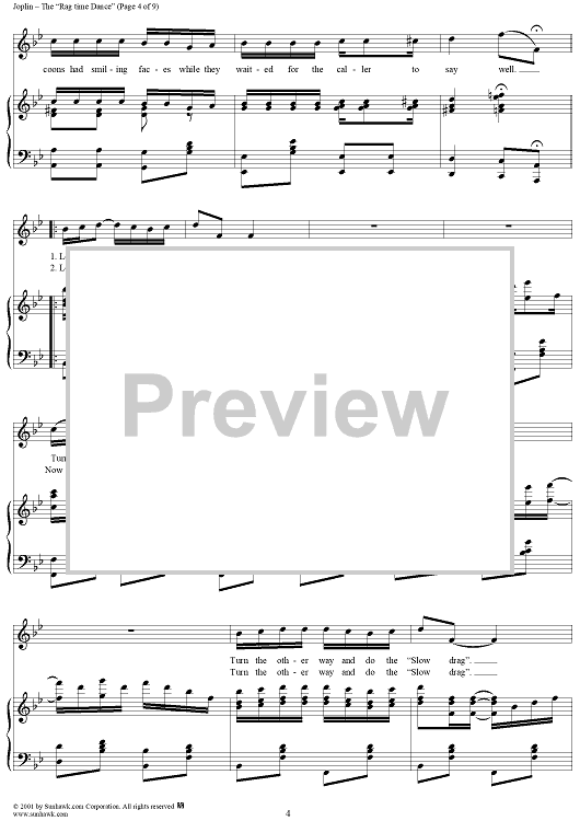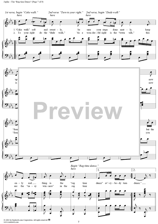 Digital Sheet Music for The Ragtime Dance (1902) by Scott Joplin scored for Piano/Vocal; id:249675