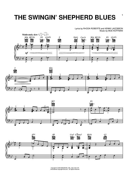 Digital Sheet Music for The Swingin' Shepherd Blues by Moe Koffman, Rhoda Roberts, Kenny Jacobson scored for Piano/Vocal/Chords; id:372415