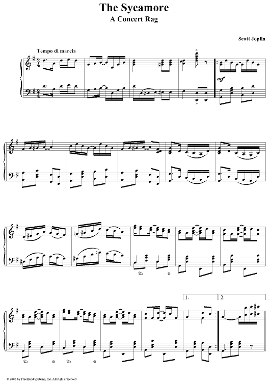 Digital Sheet Music for The Sycamore by Scott Joplin scored for Piano Solo; id:249551