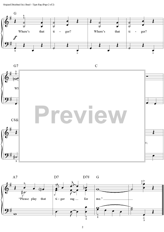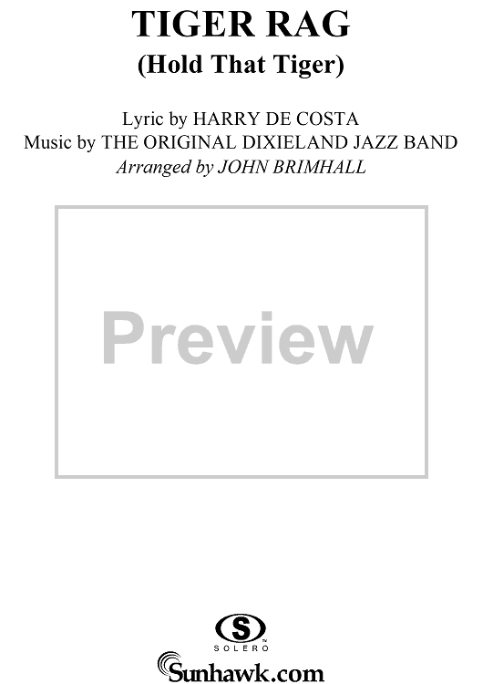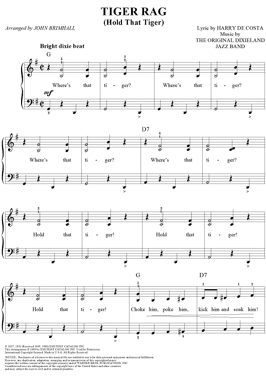Digital Sheet Music for Tiger Rag (Hold That Tiger) by Harry DeCosta, John Brimhall, Original Dixieland Jazz Band scored for Easy Piano/Vocal; id:253896