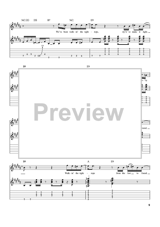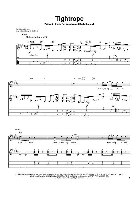 Digital Sheet Music for Tightrope by Stevie Ray Vaughan, Doyle Bramhall II scored for Guitar Tab; id:391098
