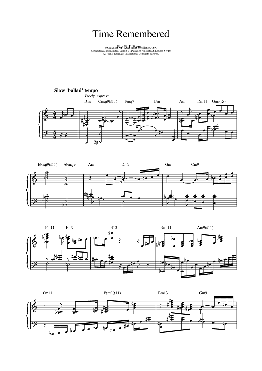 Digital Sheet Music for Time Remembered by Bill Evans scored for Piano; id:380705