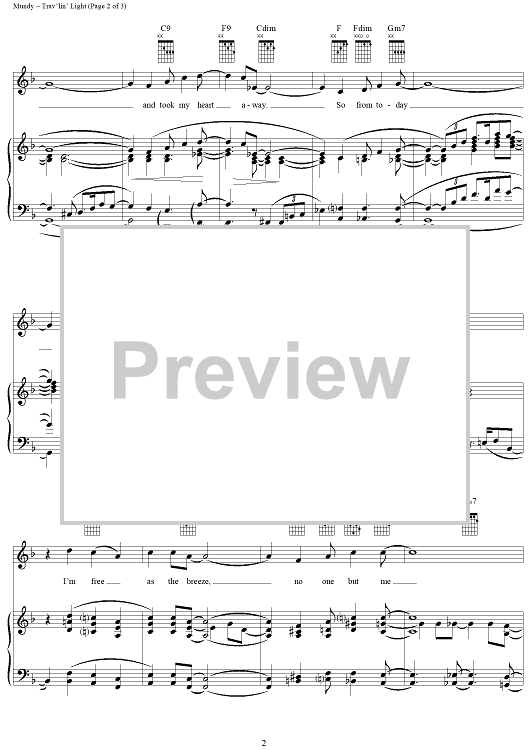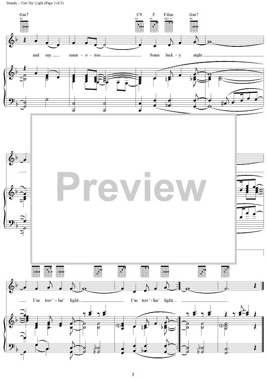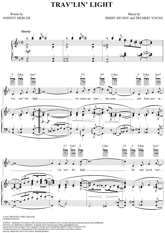 Digital Sheet Music for Trav'lin' Light by Johnny Mercer, Jimmy Mundy, Trummy Young scored for Piano/Vocal/Chords; id:252975