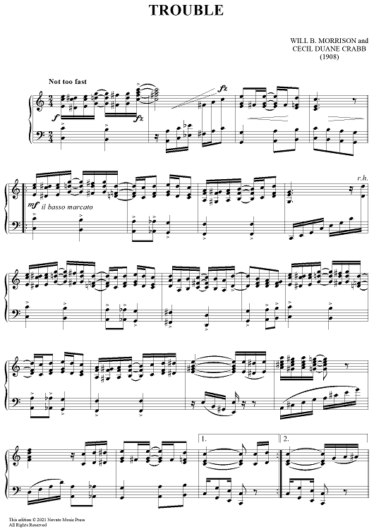 Digital Sheet Music for Trouble by Cecil Duane Crabb, Will B. Morrison scored for Piano Solo; id:215571