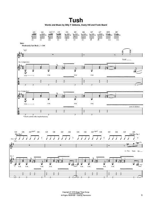 Digital Sheet Music for Tush by Billy Gibbons, Dusty Hill, Frank Beard, ZZ Top scored for Guitar Tab; id:370746