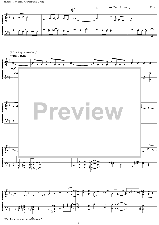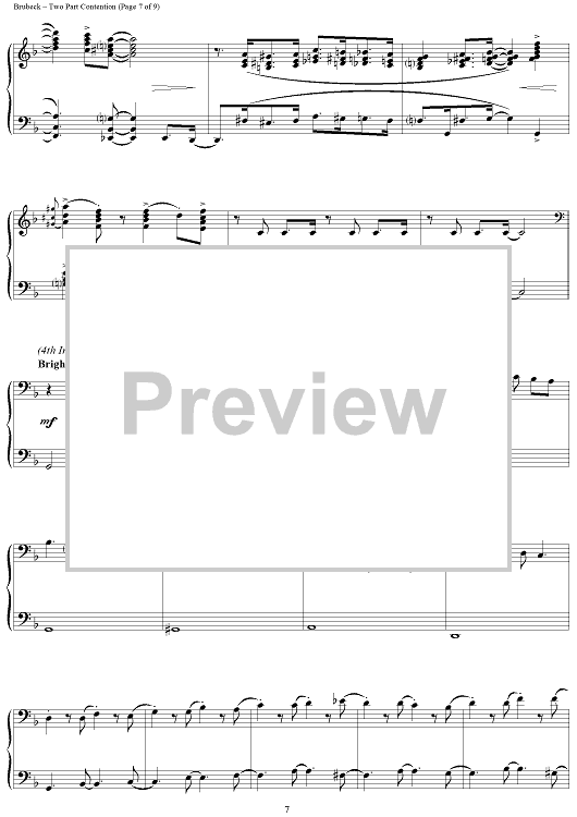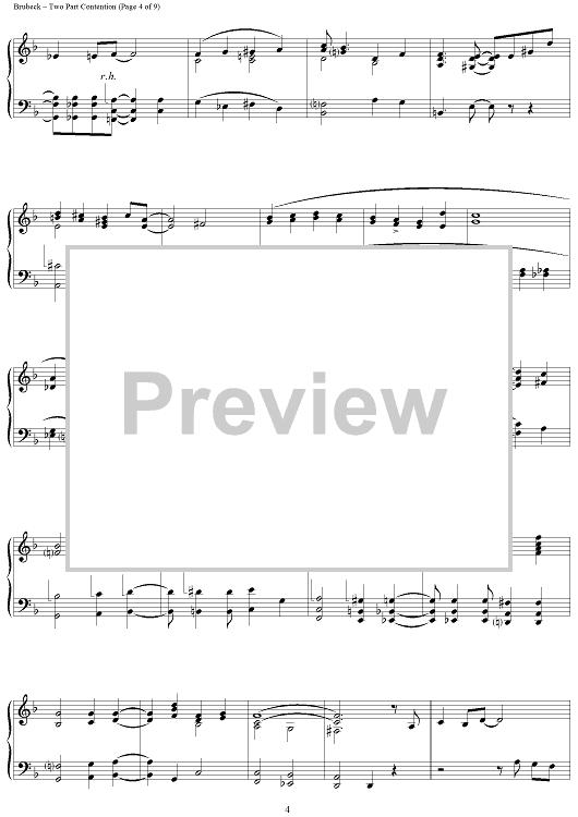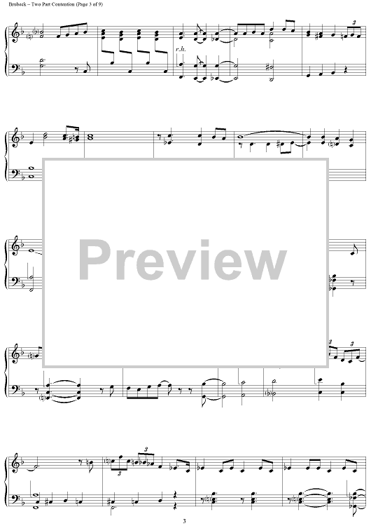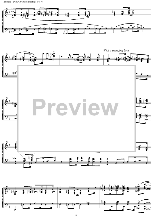 Digital Sheet Music for Two Part Contention by Dave Brubeck scored for Piano Solo; id:314948