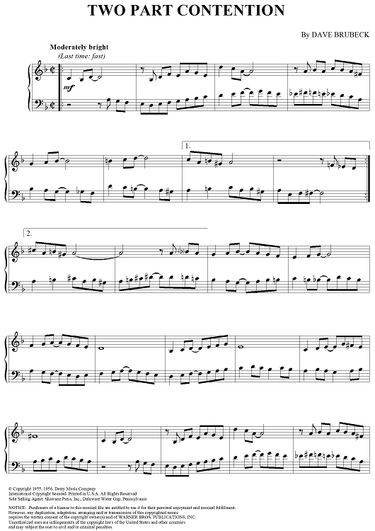 "Two Part Contention" Sheet Music by Dave Brubeck