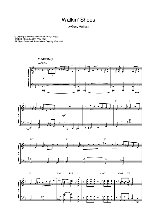 Digital Sheet Music for Walkin' Shoes by Chet Baker, Gerry Mulligan scored for Piano; id:382389