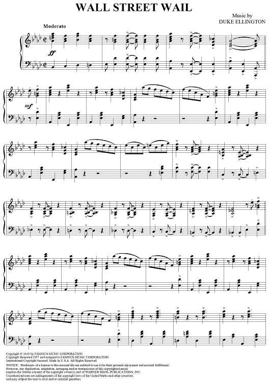 "Wall Street Wail" Sheet Music by Duke Ellington