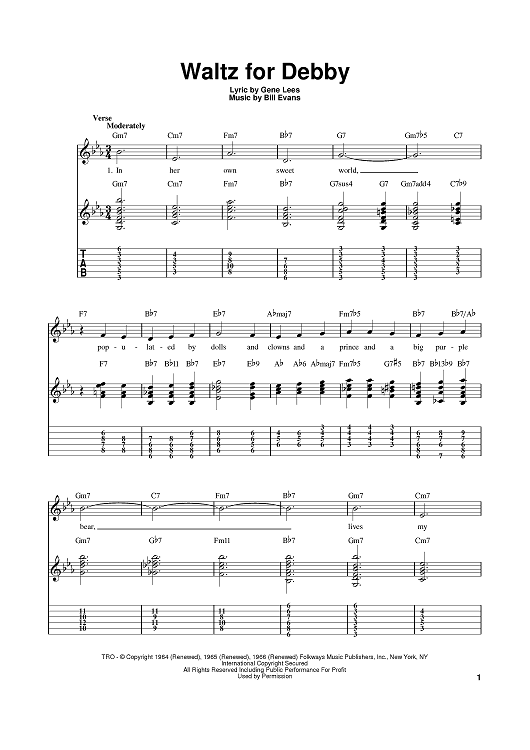 Digital Sheet Music for Waltz For Debby by Bill Evans, Gene Lees scored for Easy Guitar Tab; id:375093