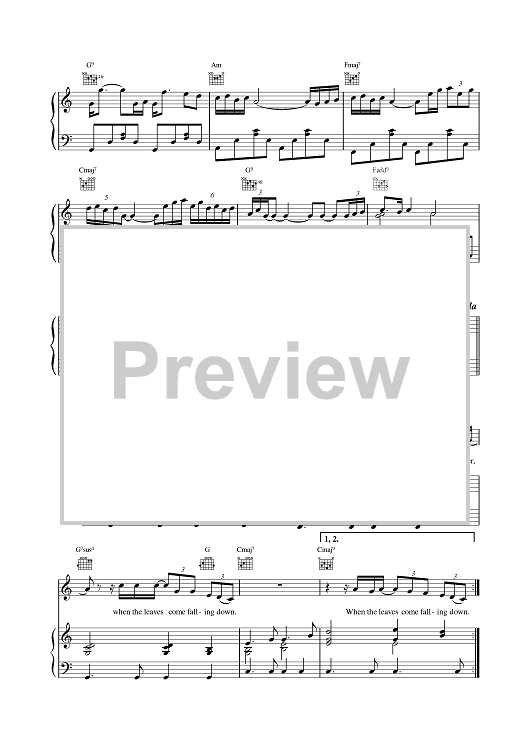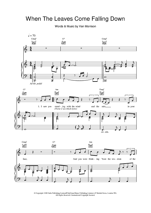 Digital Sheet Music for When The Leaves Come Falling Down by Van Morrison scored for Piano/Vocal/Chords; id:379940