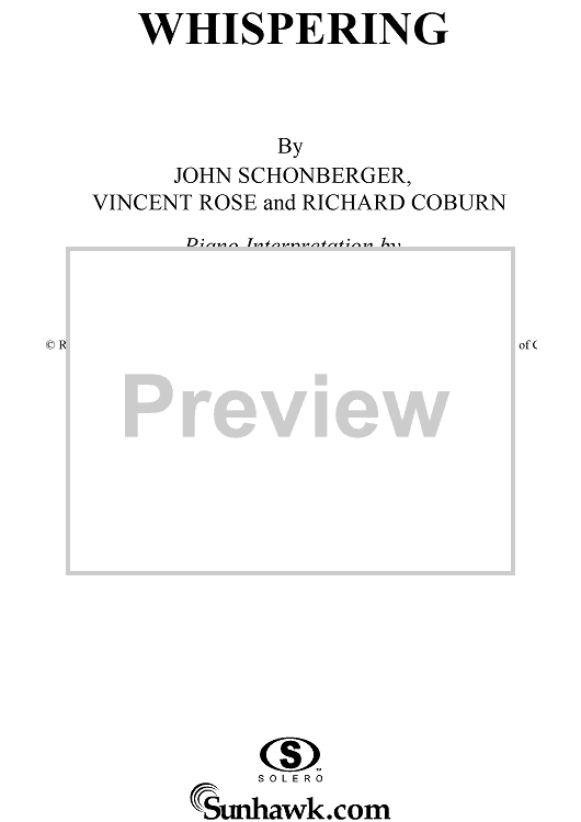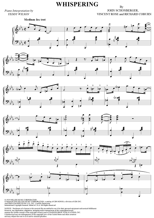 Digital Sheet Music for Whispering by Teddy Wilson, Vincent Rose, Richard Coburn, John Schonberger scored for Piano Solo; id:120156