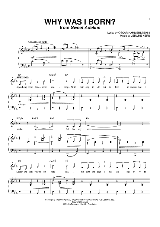 Digital Sheet Music for Why Was I Born? by Jerome Kern, Oscar Hammerstein II scored for Piano/Vocal/Chords; id:387623