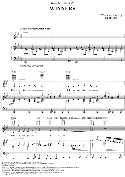 Digital Sheet Music for Winners by Frank Sinatra, Joe Raposo scored for Piano/Vocal/Chords; id:112805