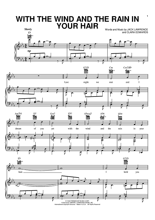 Digital Sheet Music for With The Wind And The Rain In Your Hair by Pat Boone, Jack Lawrence, Clara Edwards, Tal Farlow scored for Piano/Vocal/Chords; id:387238