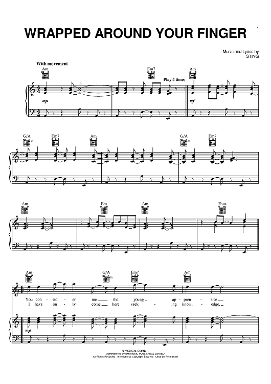 Digital Sheet Music for Wrapped Around Your Finger by Sting, The Police scored for Piano/Vocal/Chords; id:395414