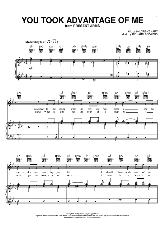 Digital Sheet Music for You Took Advantage Of Me by Richard Rodgers, Lorenz Hart scored for Piano/Vocal/Chords; id:370867